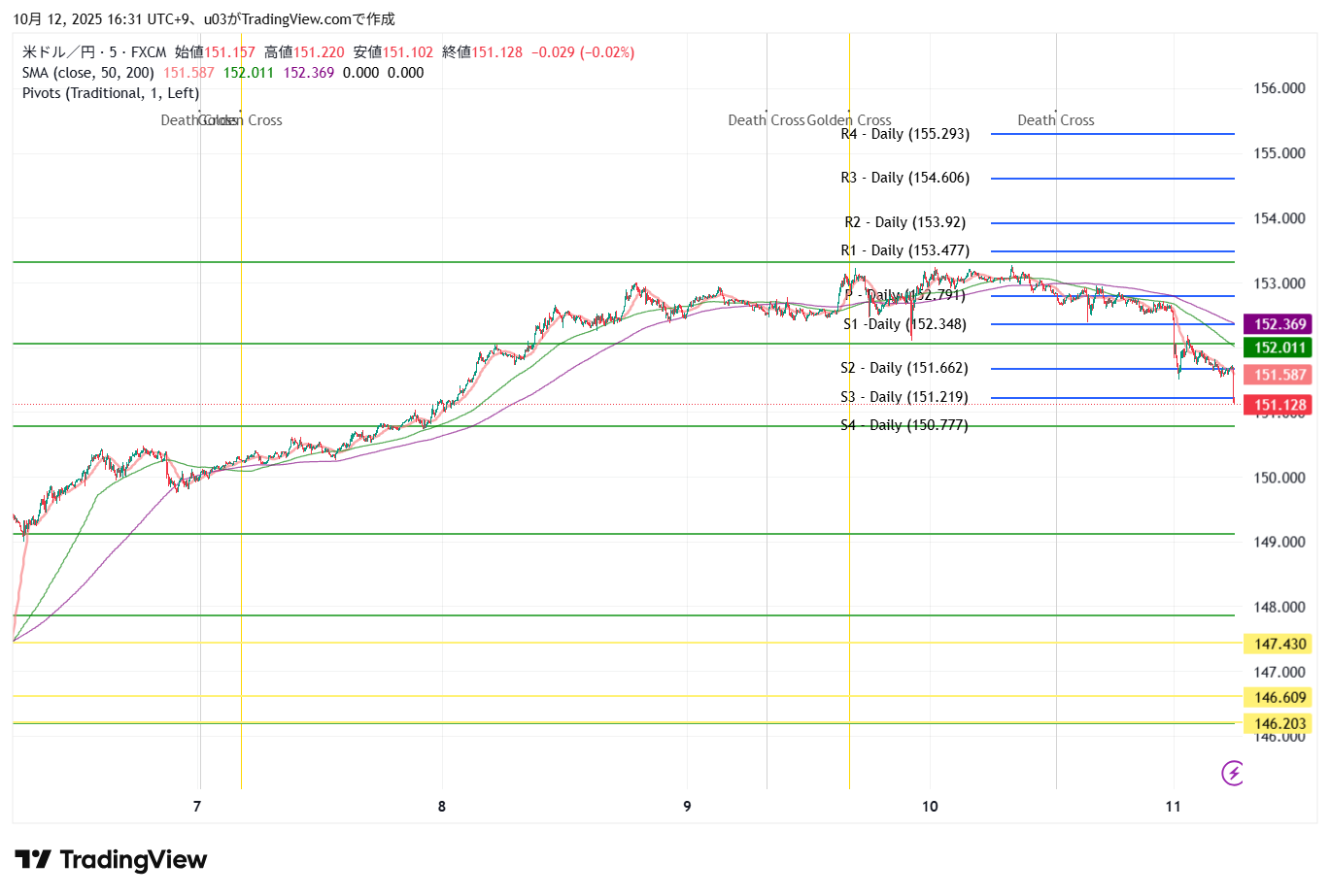 候補としては151円、150円、そして10/6の窓を埋めきった147円台後半あたりを考えています。