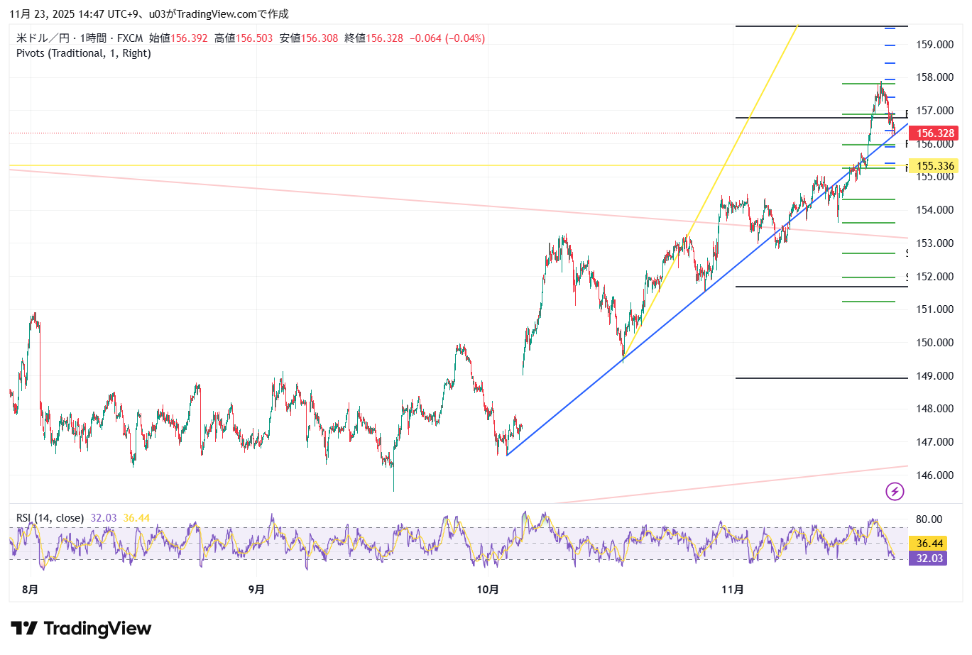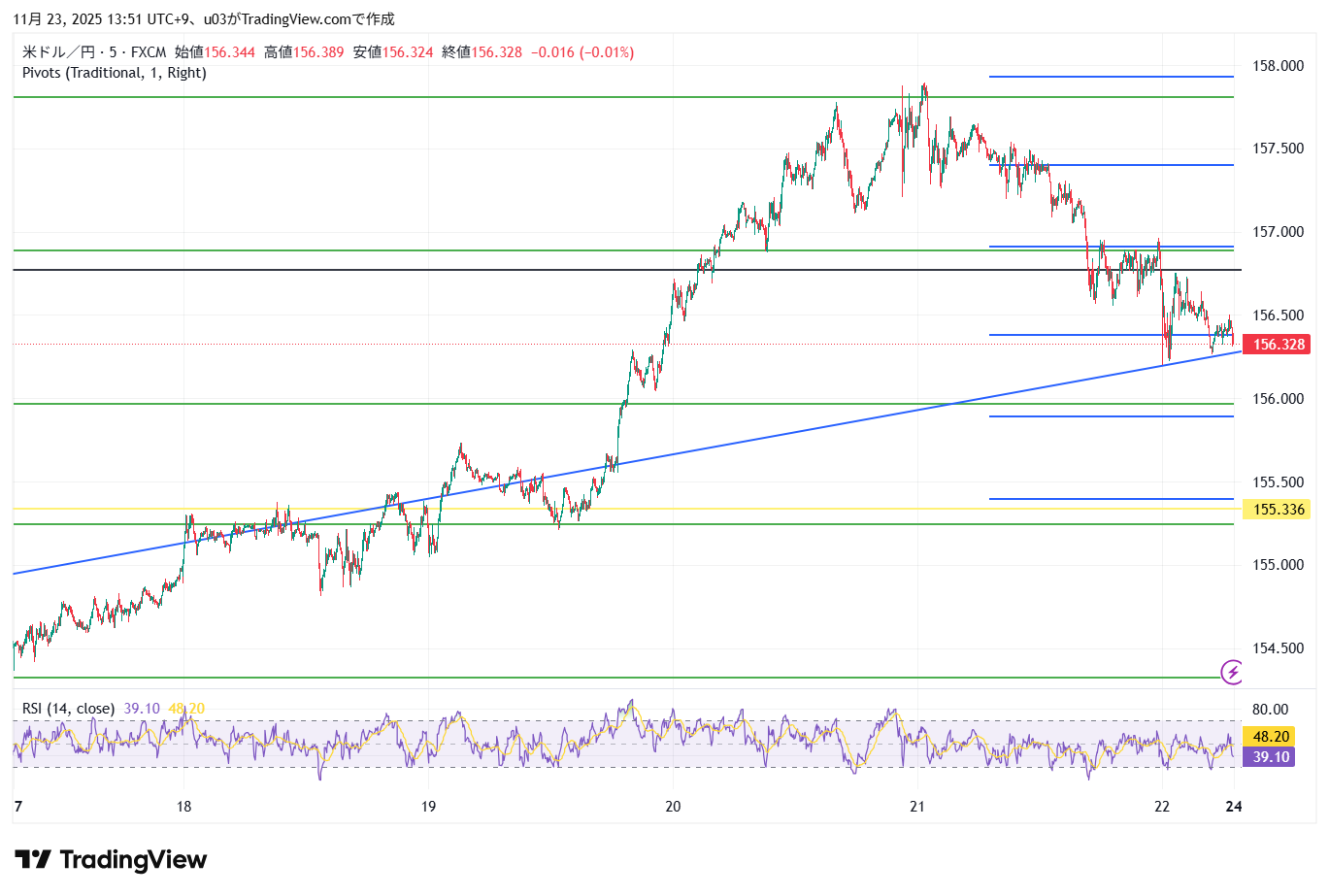 終値156.328円で週を終えました。