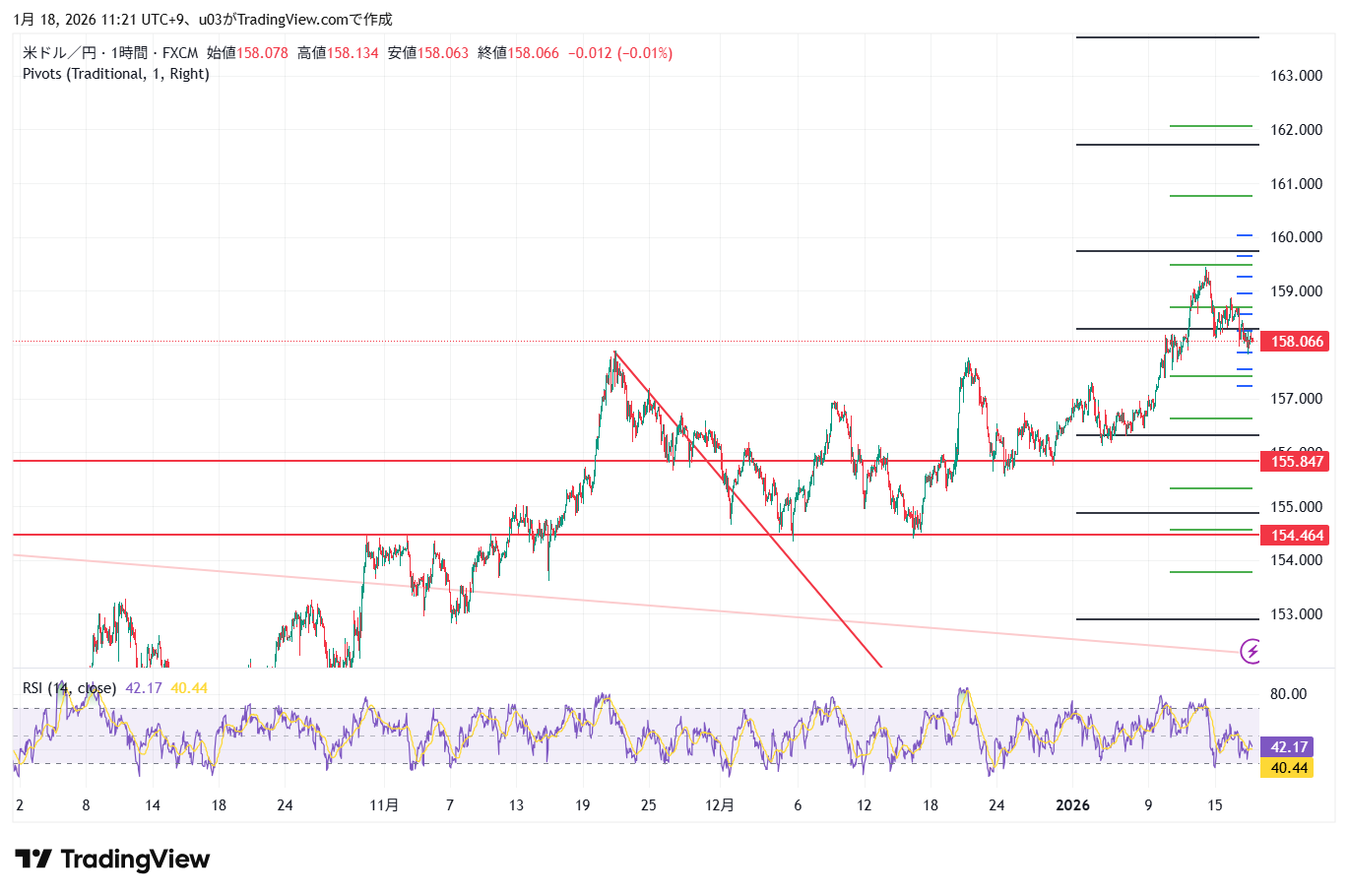 大きく下落する場合は156円前後、さらに下だと154円中盤辺りが反発の狙い目になりそう。
