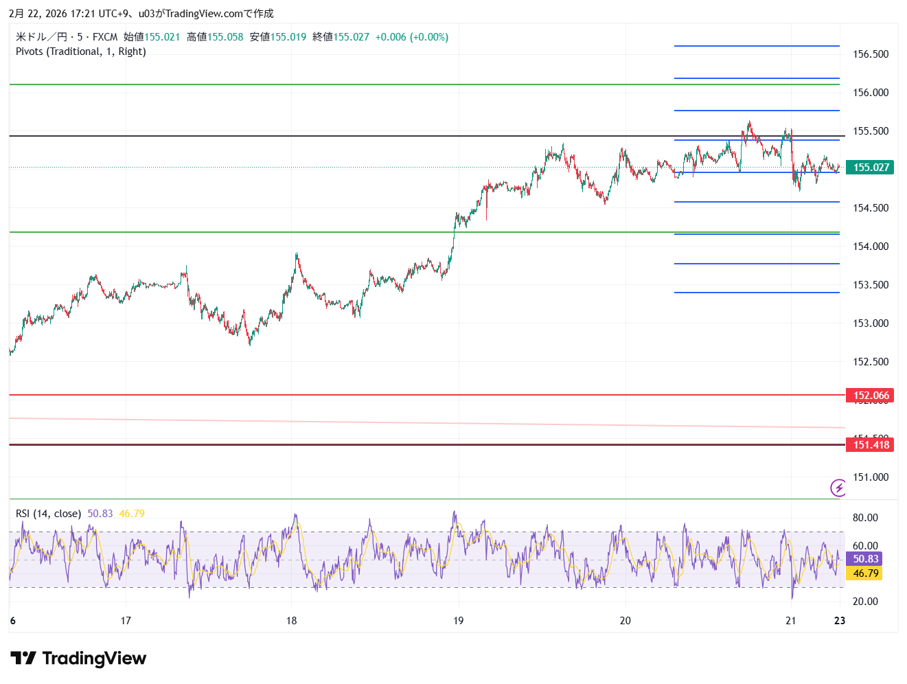 狙いどころは下限152円。